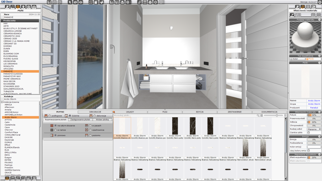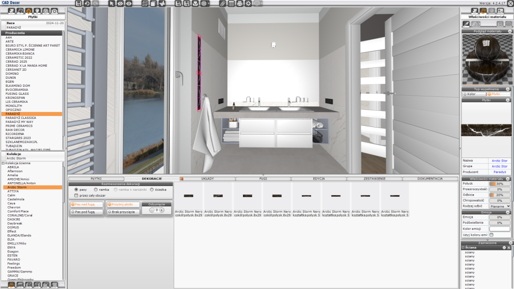 - Precyzyjne wstawianie pojedynczych płytek lub dekorów z określeniem punktu obrotu i kąta ustawienia.