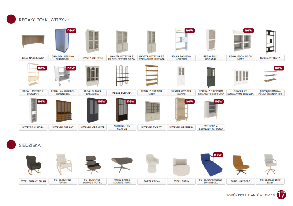 Wśród dodanych pozycji znajdują się m.in. modele komód, kilkanaście nowych krzeseł i ponad 20 lamp – zarówno wiszących, jak i stojących oraz jeszcze więcej elementów do pokoju dziecięcego.